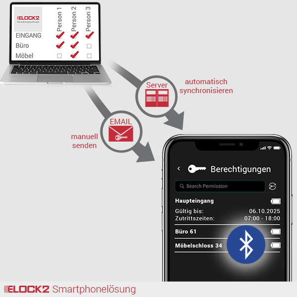 ●Intelligente Verwaltung: Vergeben Sie zeitabhängige Zutrittsrechte in einer klar strukturierten Software. Rechte lassen sich per E-Mail versenden oder automatisch über den Server synchronisieren.