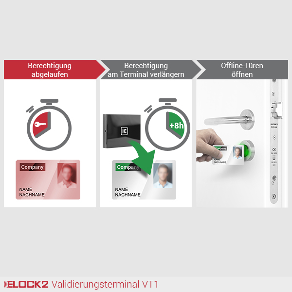 Das Validierungsterminal sorgt für eine sichere und flexible Zutrittskontrolle, indem es Berechtigungen automatisch verlängert und offline speichert.