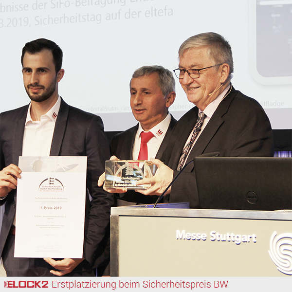 Das Land Baden-Württemberg zeichnete drei Unternehmen mit dem „Sicherheitspreis Baden-Württemberg 2019“ aus. Den ersten Preis erhielt die Firma ELOCK2